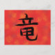 This beautiful postcard has Japanese calligraphy for the kanji 竜. It can mean dragon or imperial. When used on its own, dragon is pronounced as "ryuu". A word using this kanji is 恐竜 (or kyouryuu) - meaning dinosaur.