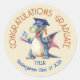 This graduating dragon appears on this sticker, that has a cream color background. The message on top reads “CONGRATULATIONS GRADUATE”. At the bottom, there’s an area for a name and year of graduation. All text can be customized.