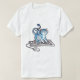 A blue, impish dragon cat stands on a keyboard. This cartoon design shows a kitty doing what kitties do best; causing trouble and entering gibberish into your computer!