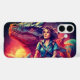 This phone case has a dragon and a lady on it.