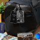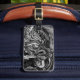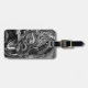 A dragon lurks in a cave deep underground. Luggage tag with a black and white customizable design for you to personalise with your own text, pictures and ideas. An original ink drawing by Jess Perry.