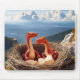 Fantasy mouse pad with baby red dragons in their nest.