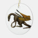 A digital painting of a brown dragon with orange wings, and white horns all around his head.