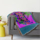 A quality printed throw has its advantages. This is a much finer weave throw than its loopier cousins, and though lighter, it is worth the investment for custom room accessorizing. The back is much prettier than the typical brown, and the fringe on the long sides very vivid, the selvage nicely done. Before photographing, I washed the throw in cold water, delicate, with a thicker woven throw the same size. On tumble dry low, this throw was dry in half the time as the other. This is a very practical quality if you use throws for furniture covers or to wrap up in frequently. The sleekness of the fabric makes it a great layer for accenting or protecting without the feeling of sitting on too much stuff. Perfect for napping or when you feel a light chill coming on. The color printing is beautiful and on this fabric, matched the design and color of my Photoshop image. This is an advantage for blending room fabrics and colors. The fringe on the short sides prints the colors from the design image and therefore varies from the side fringe. I streaked a white fractal line through the plaid pattern to give the illusion of weaving. This printed as crisp as an illusory thread, and put some white in the short side fringe, showing another advantage of print vs loomed- for artistic purposes, line lines, detail, and color integrity can be planned and preserved. My loomed throws have color limitations and more of a needlepoint texture. Print throws reproduce an exact image. The throw felt a little stiff straight out of the package, but this went away in the first delicate wash. Of course I searched the wash water for ink or bleeding and there was none.