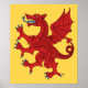 This dragon rampant design in red was inspired by various heraldic red dragons.