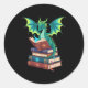 Dragon Reading Books Fantasy Lovers Mythical Creat Classic Round Sticker