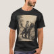 My 11 yo wore adult XL (5’7” 165#). The 8yo is small framed. She wore adult small and tied it in the back. Grandma wore adult large with long sleeve shirt underneath. Tall girl adult medium. Dark haired male adult large. Good quality dark Heather gray, Gildan brand shirt. -it was next up from basic choice and cost about $20 per shirt. Not too thick or thin. Washed and dried well, no major shrinkage. Not see-through. Can wear a bra under it fine. Screen print is just as shown and well done, front and back.