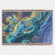 Dragon Rider art is a dramatic fantasy painting by Traci Van Wagoner featuring a blue green dragon in a dramatic flying pose with a rider in red holding a staff high on his back with a child rider behind. Anyone who loves dragons and fantasy art will love this artwork.