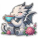 Let your imagination soar with our captivating sticker, and let the elegance and charm of a dragon sipping coffee or tea inspire you to embrace every moment with grace and magic!