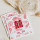 Make an impression with this unique dragon and phoenix-themed envelope seal. It features a vibrant red and white pattern in the backdrop of a dragon surrounded by clouds. In front of this is a large double happiness symbol. Towards the bottom are the names of the lovely couple along with their wedding date along the bottom. A great item for envelope seals, favor stickers, or any variety of uses for your special wedding event.