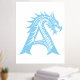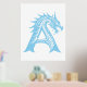 Dragon Styled Letter A, Dragon Alphabet, Monogram Foil Prints