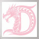 Dragon Styled Letter D, Dragon Alphabet, Monogram Foil Prints
