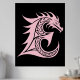 Dragon Styled Letter E, Dragon Alphabet, Monogram Foil Prints
