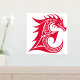 Dragon Styled Letter E, Dragon Alphabet, Monogram Foil Prints
