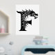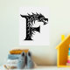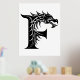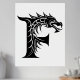 Dragon Styled Letter F, Dragon Alphabet, Monogram Foil Prints