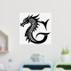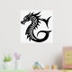 Dragon Styled Letter G, Dragon Alphabet, Monogram Foil Prints