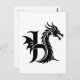 Dragon Styled Letter H, Dragon Alphabet, Monogram Postcard