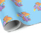 Gift wrapping paper shown in a bright blue color with a cute dragon print.