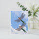 Colorful dragonflies flying across a blue sky with fluffy white clouds flower nature photography by Susan postcard. You can personalize this postcard with any text or message you like by clicking on Customize. Matching postage stamps are available. This image is available on many products in my gallery.