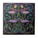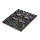 Introducing the Dragonflies Tile from the Swamp Collection. This decorative 4.25 x 4.25 inch ceramic tile features an intricately detailed dragonfly design in art nouveau style. The vivid purple, emerald green, golden yellow, and jet black motifs have an almost ultraviolet quality. Part of a set of 12 Gothic-inspired tiles with bats, frogs, and other swamp creatures. Perfect for kitchen backsplashes, bathrooms, and accent walls. The nature-inspired dragonfly tile adds an elegant yet edgy ambiance. Made from durable printed ceramic tile that's water-resistant and easy to clean. Bring intrigue and allure to your space with this singular dragonfly accent tile!