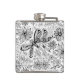 Dragonfly and flowers doodle hip flask