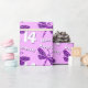Birthday wrapping paper in bright aqua teal and purple with a stylised dragonfly design. Personalize this dragonfly art birthday paper with your child's name and teenage. Currently reads Happy Birthday Haley 14 today. Ideal for dragonfly or wildlife fans. Design and original art by Sarah Trett.