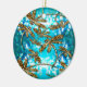 Gorgeous golden dragonflies on a bubbly blue and green background.