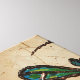 Gorgeous blue green winged dragonflies flit on a rustic cream background.