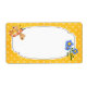 This label features a colorful cartoon dragonfly and a bunch of blue flowers on a yellow polka dot background. Click on the Customize It button to add your own text. Can be used as a gardening label, canning label, bookplate label, shipping label, gift tag, party favor and more.