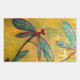 Gorgeous metallic colored dragonflies on a gold washed background.
