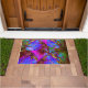 A happy brightly colored door mat with gorgeous flitting dragonflies. You can add text or numbers to make it just right.