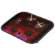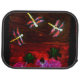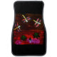 Nature lovers car mat set featuring glowing dragonflies flying above a Lily flowers pond. A colorful abstract night scene created from my original glass painting using digital effects. © Annabel Potter