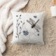 Dragonfly Love Throw Pillow designed by Guilty Pleasures Beautiful design with a big dragonfly with flowers in blues, grays, and black on a white background. Back side of pillow has plain white background. Perfect gift for yourself or someone who loves dragonflies.