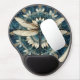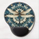 This enchanting artwork showcases a beautifully detailed dragonfly at the heart of a circular, mandala-like design. The dragonfly's wings and body are adorned with intricate patterns and fine lines, creating a sense of elegance and grace. Surrounding the dragonfly, the background features layered, symmetrical floral and geometric patterns in a harmonious blend of blue, white, and gold hues.