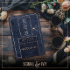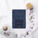 This wedding invitation features a deep, navy blue background with a delicate floral pattern that adds an air of sophistication. Rose Gold foil geometric borders and typography create a luxurious contrast, while the subtle dragonfly illustration enhances the romantic and nature-inspired esthetic. The invitation blends modern elegance with classic botanical elements, making it perfect for couples seeking a refined yet bold wedding theme.