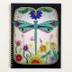 This is a bold painting, full of glints of 'gold'! In the center is a dragonfly, with lots of stylized flowers surrounding it. Shades of teal, purple, gold, blue, red, yellow, orange. Signed, original art.