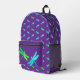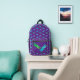 Backpack for the kids with bright blue and green dragonflies on purple background