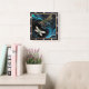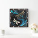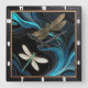 This artistic wall clock features two exquisitely detailed dragonflies with golden and white wings, gracefully set against a mesmerizing backdrop of swirling teal and blue abstract patterns on a dark background. Its elegant and modern design adds a touch of nature's beauty and contemporary style to any room. Perfect for those who appreciate unique and sophisticated decor.