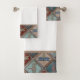 This unique Bath towel set features a dragonfly tile pattern. The Dragonfly is a popular Arts and Crafts motif. This particular pattern of Dragonfly tiles comes from four different handmade tile from Oregon tile maker Fay Jones Day. The colors include teal, brown, turquoise and ocher. This will be a perfect addition to your Craftsman bungalow Bathroom.