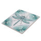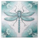Dragonfly Turquoise and White Flower Art Teal Ceramic Tile