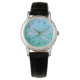 A watercolor of a green and blue dragonfly adorns this pretty watch!