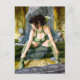 A mysterious ruin deep in the enchanted woods, and a beautiful elf with dragonfly wings, wearing a fancy green dress and knee-high green boots, is sitting on the ancient stones. Traditional airbrush painting in acrylics. Check the shop for more products featuring this painting!