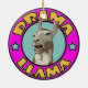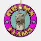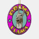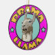 A cartoon drama llama in a circle bearing it's name