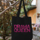 The perfect tote bag hat for girls that are a little "over the top"! The look of chunky hot pink glitter "drama queen" text on black
