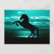 Dramatic Black Horse Teal Sky Peaceful Postcard
