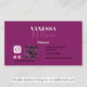 This customizable business card is a harmonious blend of elegance and creativity. The background exudes sophistication with its deep black hue, creating a dramatic canvas. Splashes of vibrant pink, white, and purple form an abstract floral pattern on the left and right sides. These colors evoke energy, passion, and artistic flair. The minimalist approach ensures a clean and uncluttered appearance, perfect for leaving a lasting impression.