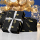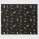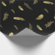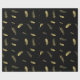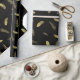 Dramatic Boho gift wrap pattern features golden floating feathers on black background