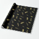 Dramatic Boho Golden Feathers Black Wrapping Paper