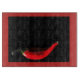 Fantastic original design. Modern, bold, bright and funky. A single glossy red giant chili sits off centre on black and framed in red.