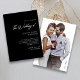Yes, you can print on the back of your invitation for free! Most designs already have a corresponding design on the back that can be personalized using the Design Tool and going to Layers. This is a great way to communicate more information or further personalize your Dramatic Elegance White Script On Black Wedding Invitation. The option is really up to you.